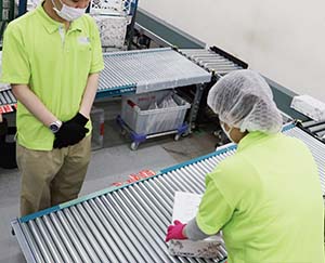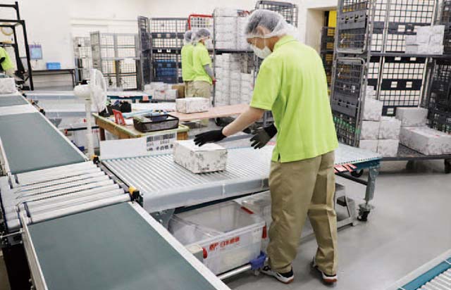 仕分けを行っていました。コンベヤーの横に4~5 人が張り付いてゆとりがなかったと思います」